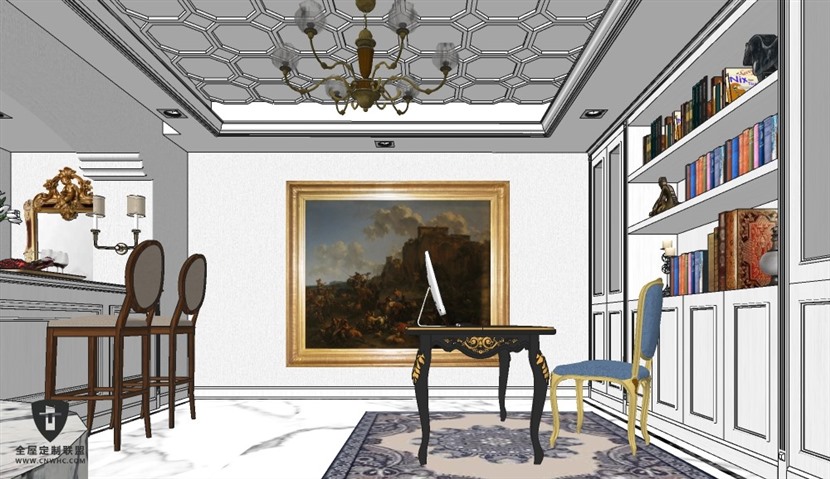 一个完整的法式风格书房整体模型,包含多个场景。本站整体模型来自国内外优秀室内设计师之手,其中不乏一些大师级的作品。通过这些作品,我们可以学习他们的场景取景、空间划分、色彩搭配、软装设计等设计理念,可以很好的提高我们的设计水平。除了以上本站即将发布大量的vray for SketchUp模型 和Enscape 模型我们可通过大师级的作品学习他们渲染参数的设置,以提高我们的室内设计效果图的表现能力。