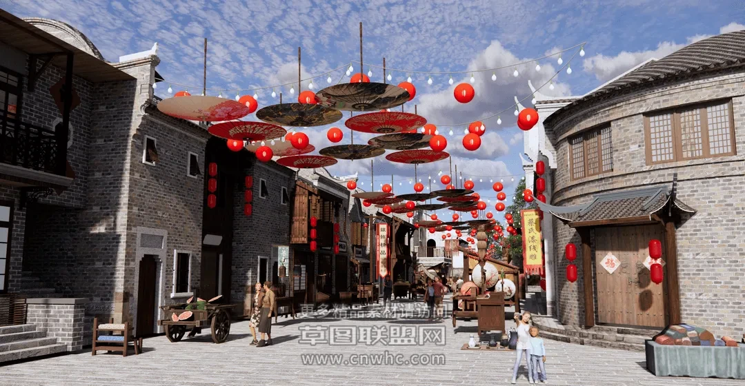 Enscape古镇商业街场景SketchUp草图大师模型下载960