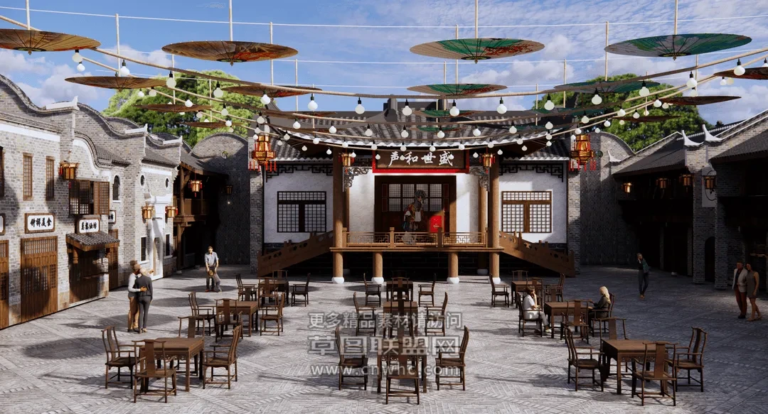 Enscape古镇商业街场景SketchUp草图大师模型下载1018
