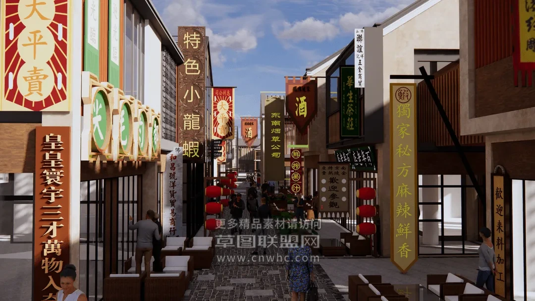 Enscape古镇商业街场景SketchUp草图大师模型下载1103