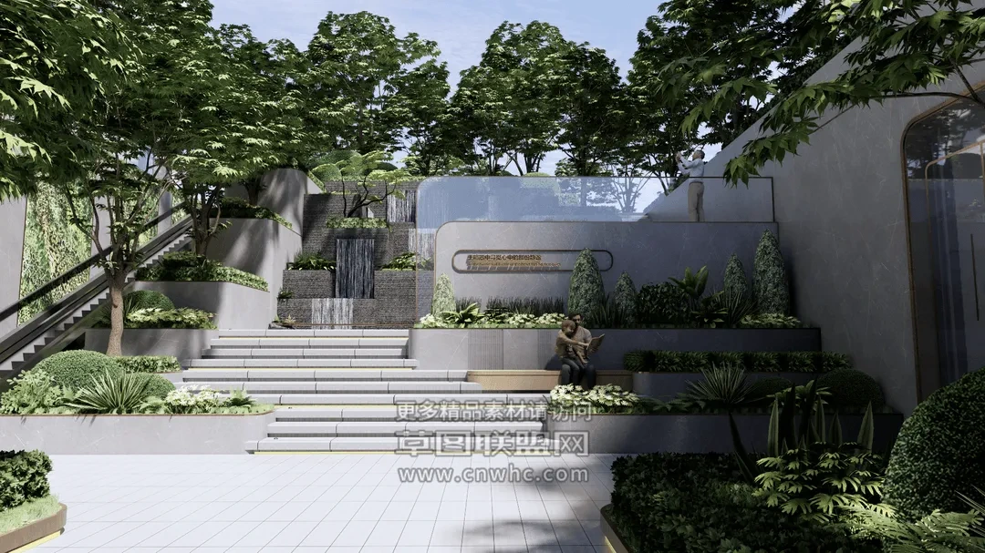 Enscape下沉式庭院场景SketchUp草图大师模型下载1106