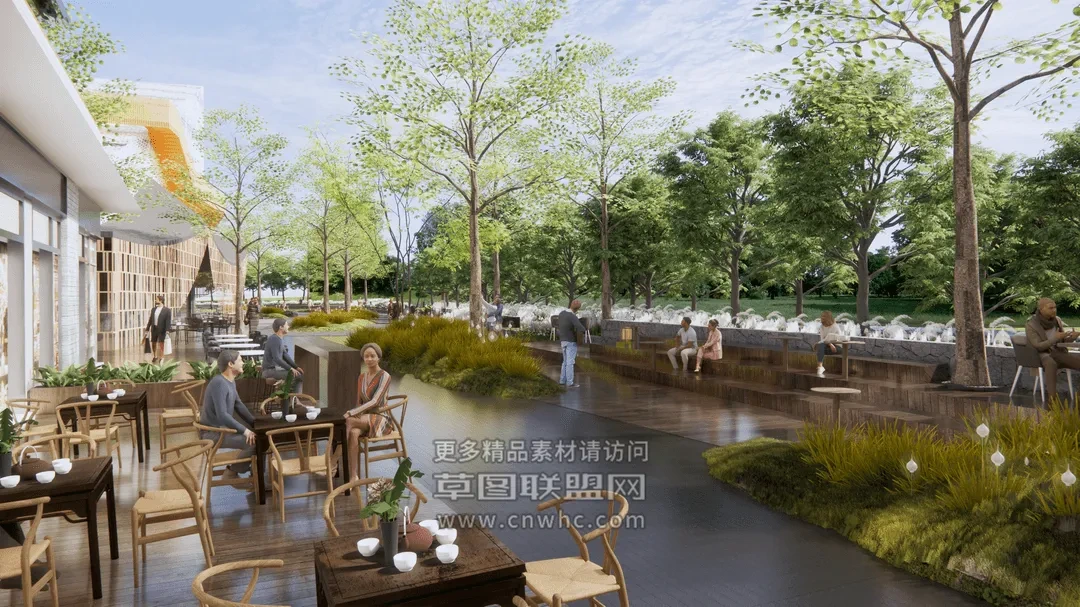 Enscape步行街场景SketchUp草图大师模型下载1122