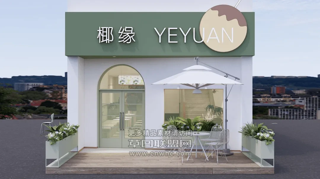 Enscape店铺门头场景SketchUp草图大师模型下载1140