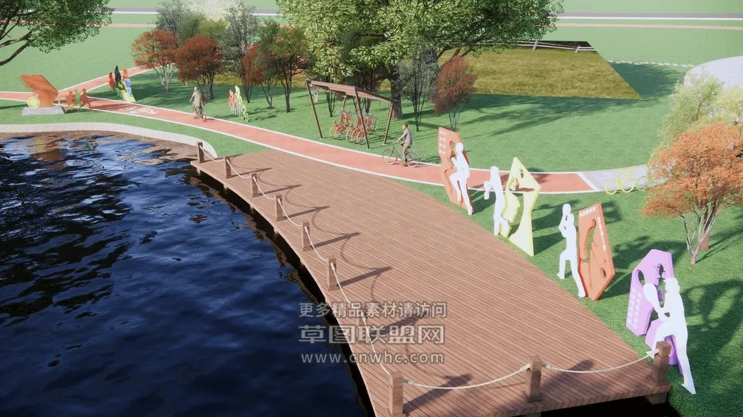 Enscape步行道景观场景SketchUp草图大师模型下载1146