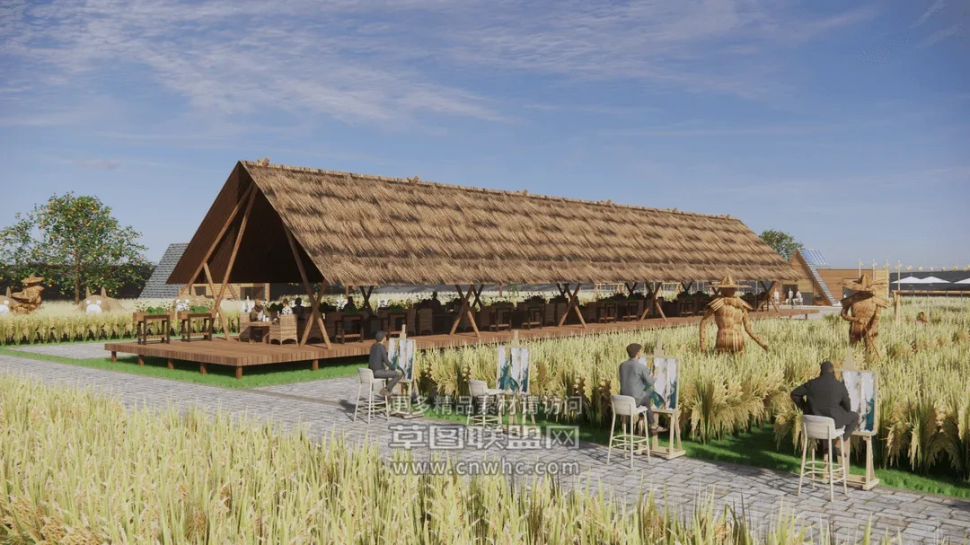 Enscape稻田景观场景SketchUp草图大师模型下载1163