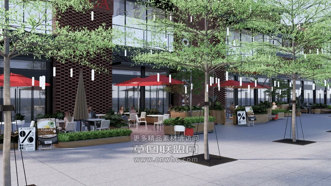 Enscape步行街场景SketchUp草图大师模型下载1181