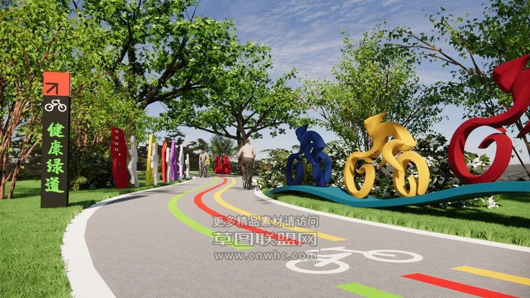 Enscape步行道景观场景SketchUp草图大师模型下载1207