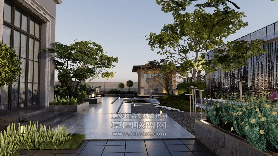 Enscape庭院场景SketchUp草图大师模型下载1241