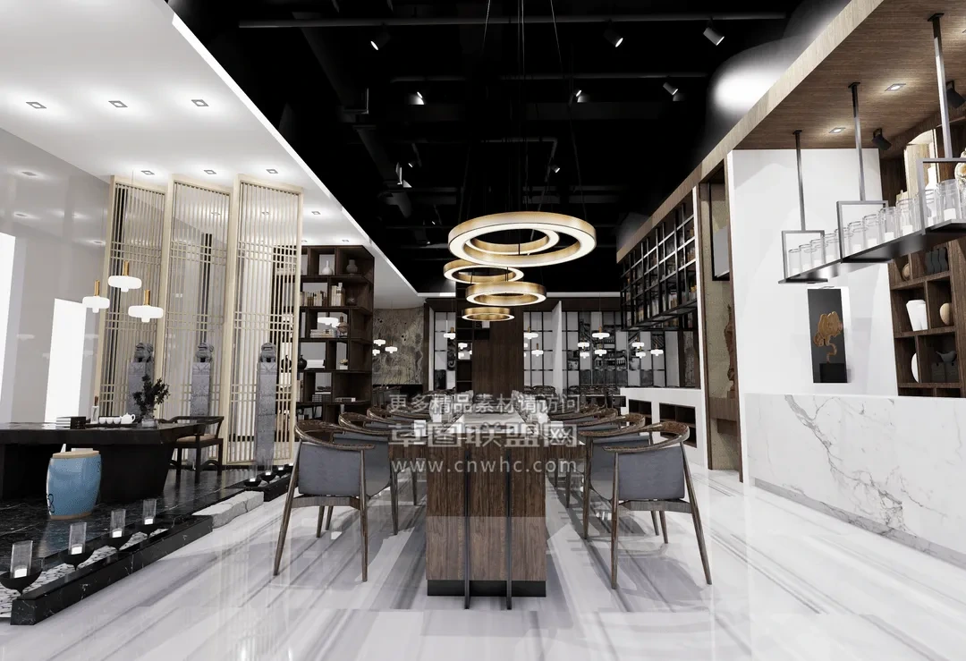 Enscape新中式餐厅场景SketchUp草图大师模型下载1254