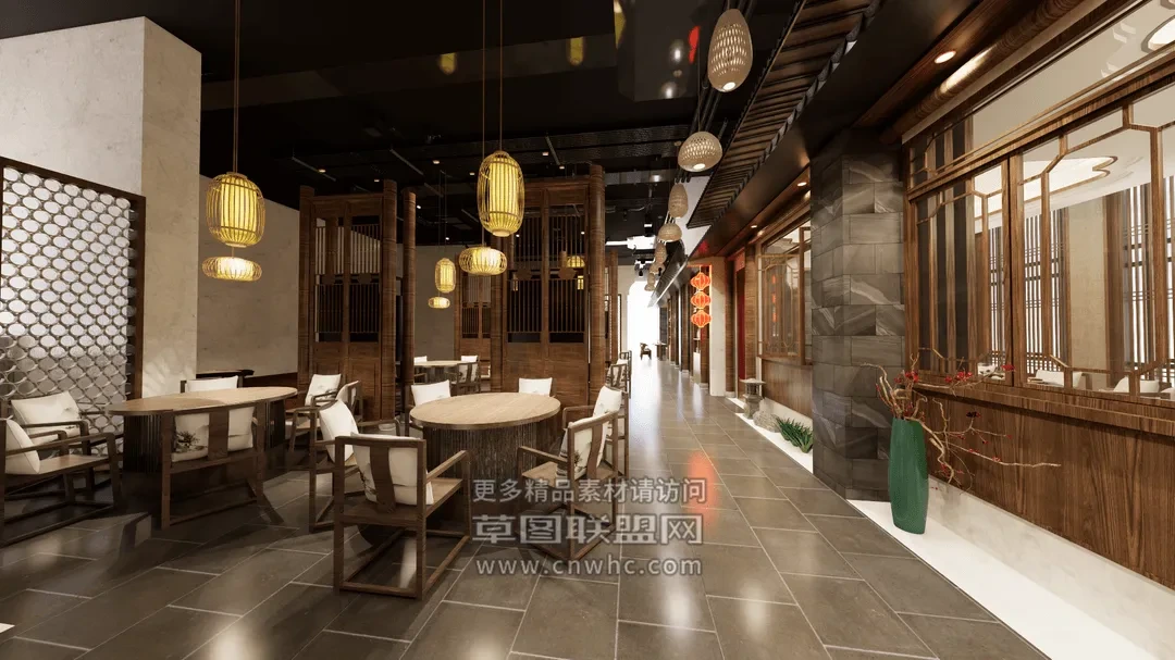 Enscape新中式餐厅场景SketchUp草图大师模型下载1259