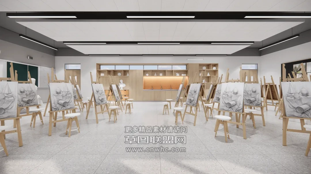 Enscape素描教室场景SketchUp草图大师模型下载1295