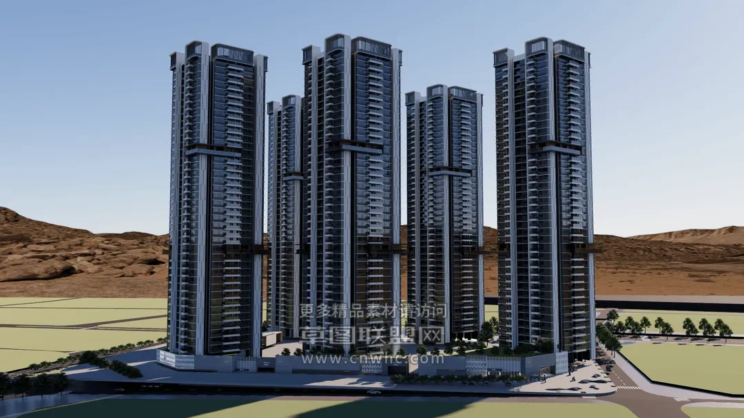 Enscape小区楼盘场景SketchUp草图大师模型下载1522