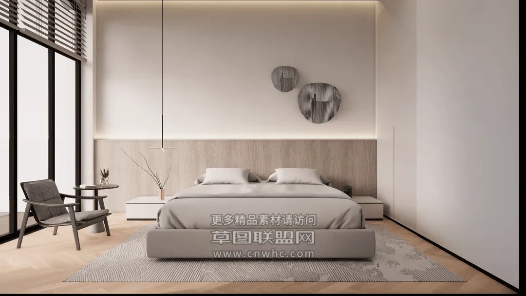 Enscape侘寂风卧室场景SketchUp草图大师模型下载1480