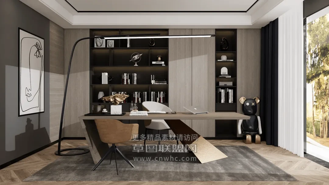Enscape书房场景SketchUp草图大师模型下载1492