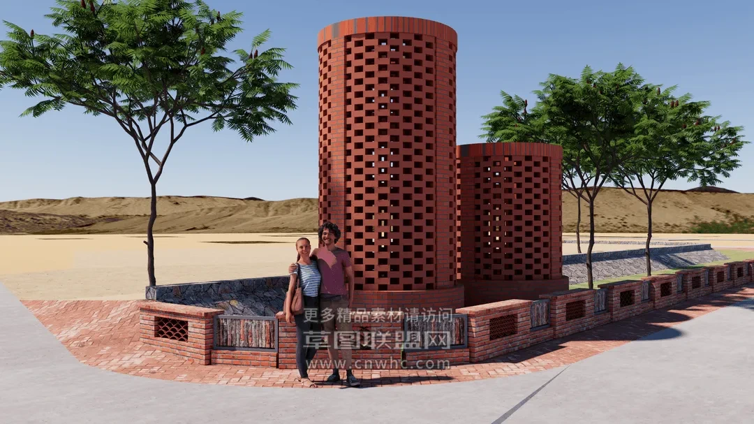 Enscape红砖建筑场景SketchUp草图大师模型下载1534