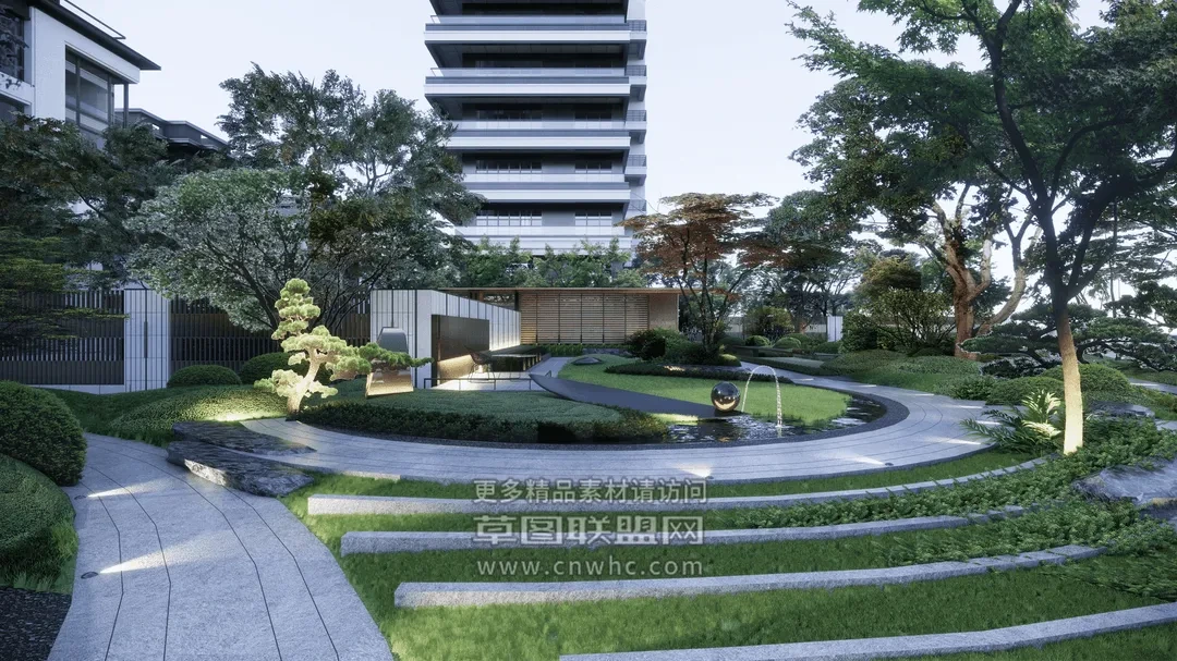 Enscape小区景观场景SketchUp草图大师模型下载1539