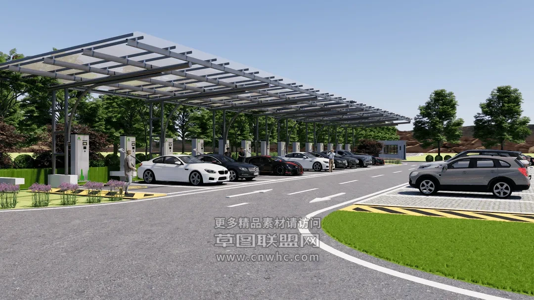 Enscape户外停车场场景SketchUp草图大师模型下载1561