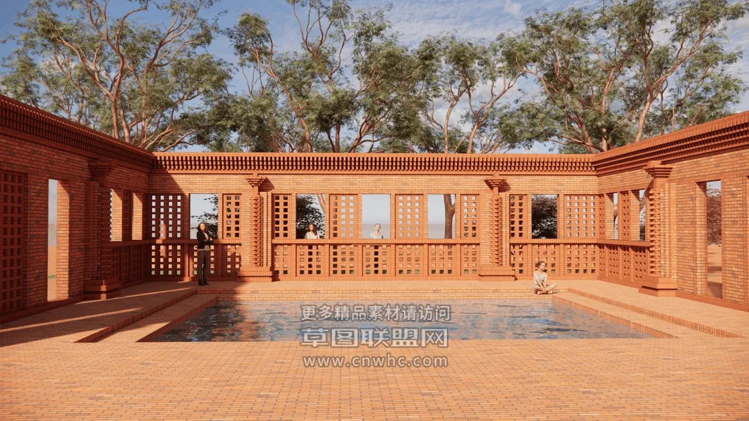 Enscape红砖建筑场景SketchUp草图大师模型下载1568