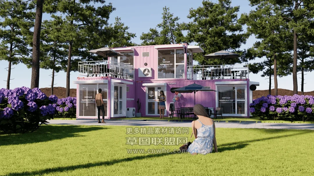 Enscape集装箱建筑场景SketchUp草图大师模型下载1575