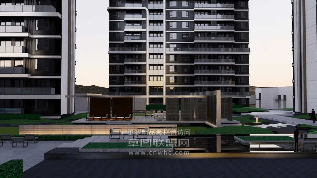Enscape小区景观场景SketchUp草图大师模型下载1582