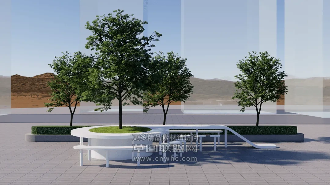Enscape广场座椅场景SketchUp草图大师模型下载1590