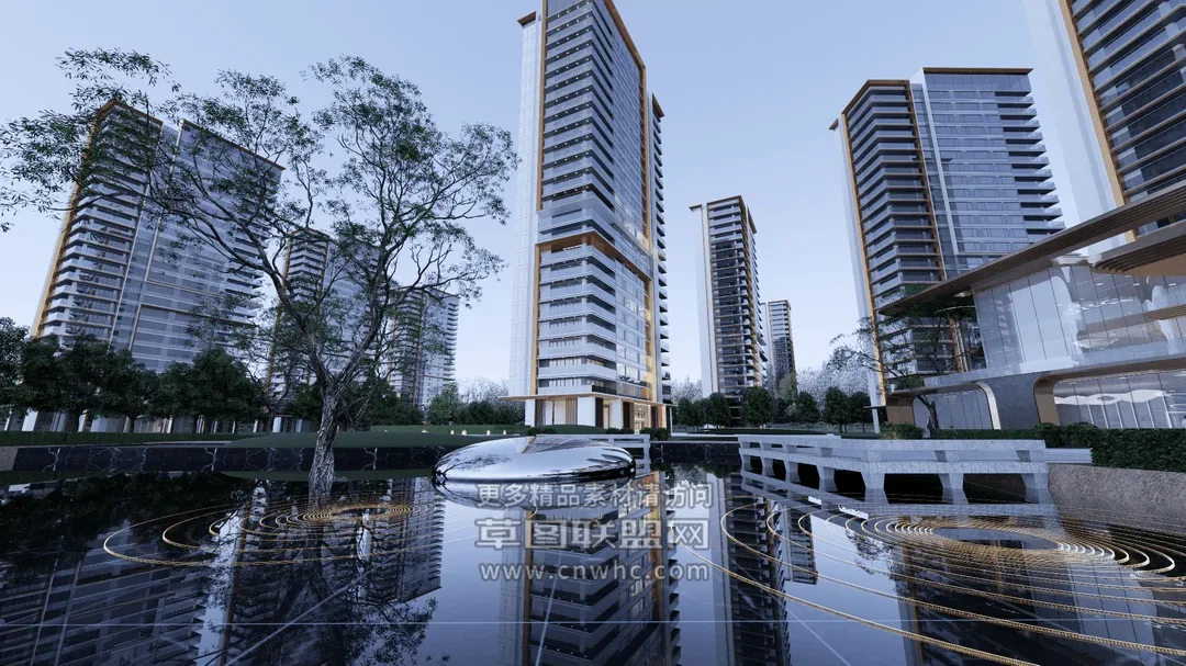 Enscape小区景观场景SketchUp草图大师模型下载1606