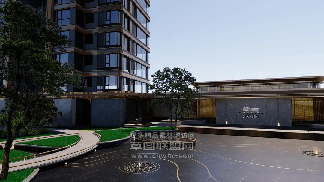 Enscape小区景观场景SketchUp草图大师模型下载1629