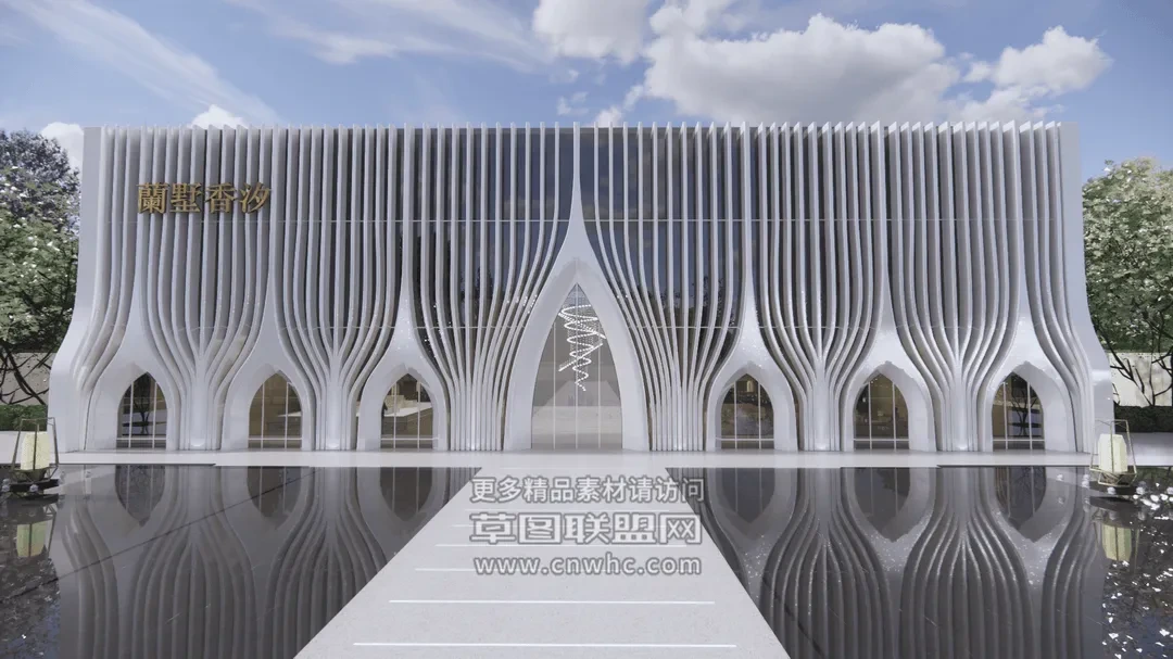 Enscape格栅表皮建筑场景SketchUp草图大师模型下载1640