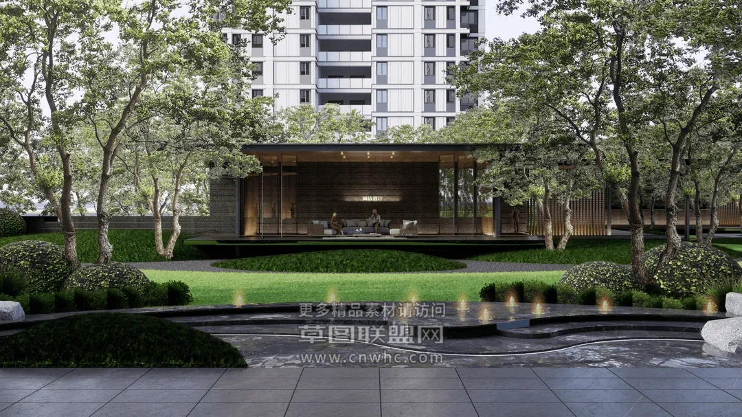 Enscape小区景观场景SketchUp草图大师模型下载1645