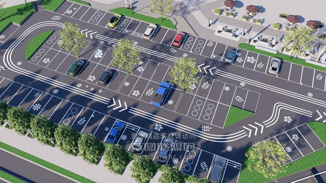 Enscape户外停车场场景SketchUp草图大师模型下载1647