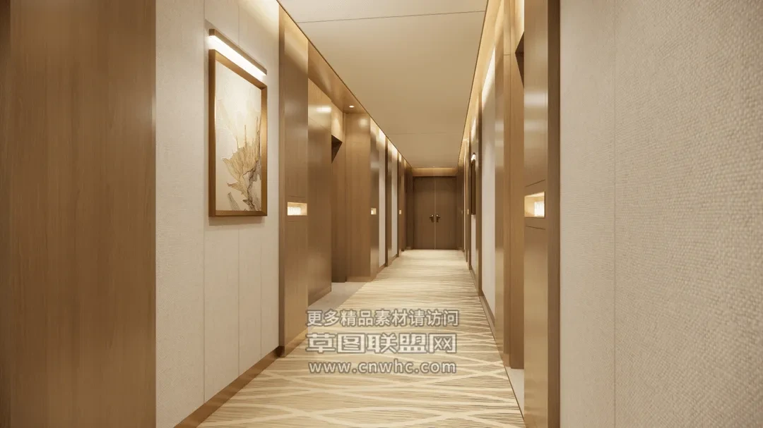 Enscape酒店客房走廊场景SketchUp草图大师模型下载2102