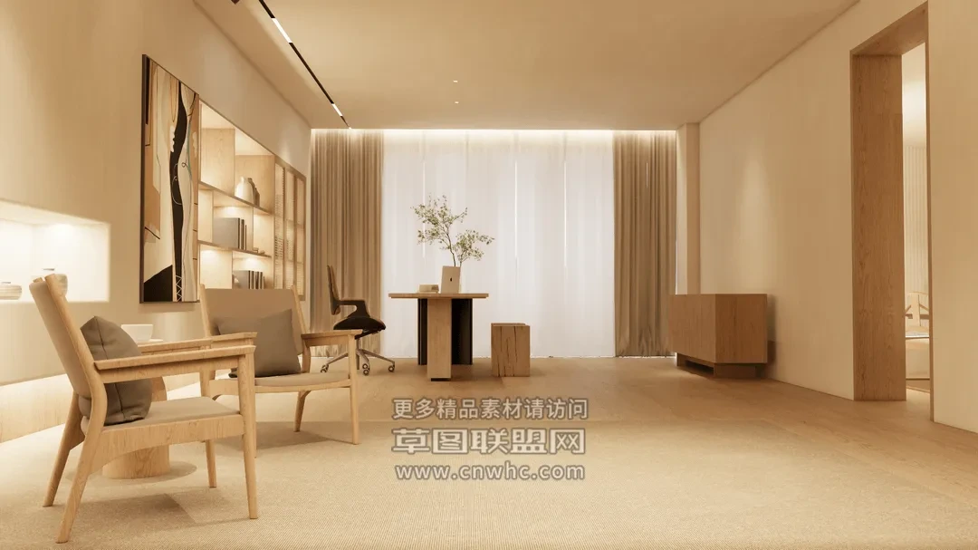 Enscape侘寂风办公室场景SketchUp草图大师模型下载2155