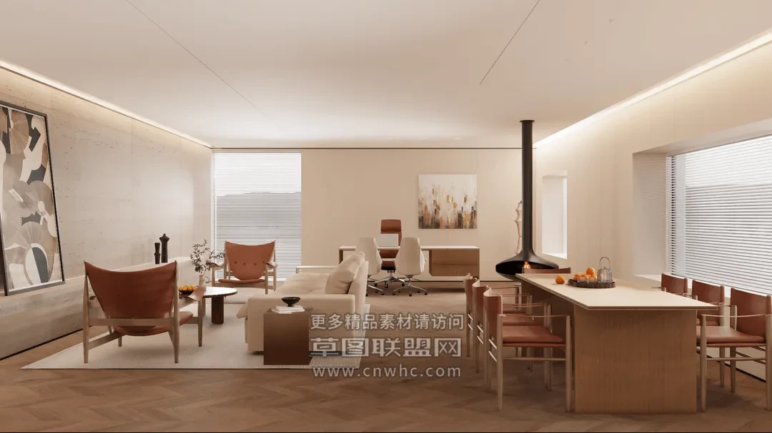 Enscape侘寂风办公室场景SketchUp草图大师模型下载2164