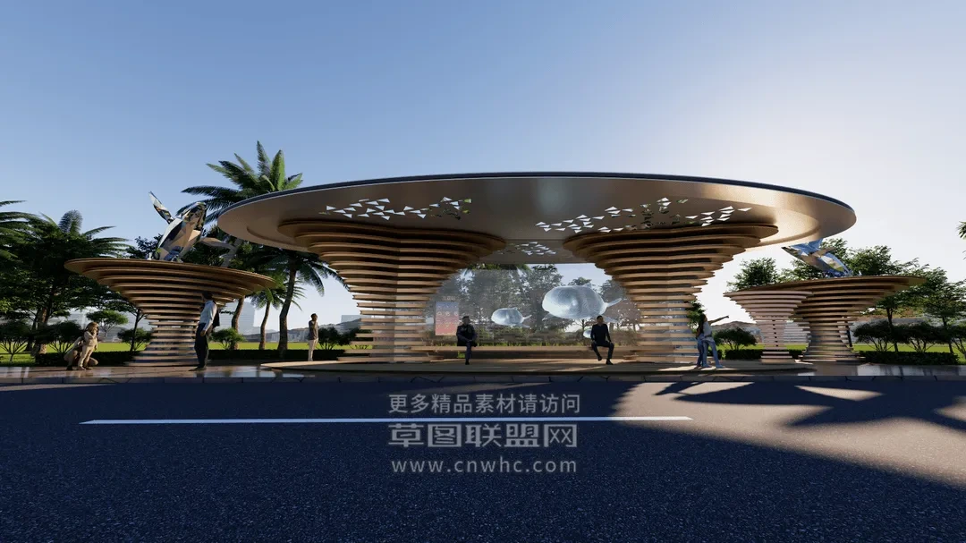 Enscape公交站台场景SketchUp草图大师模型下载2284