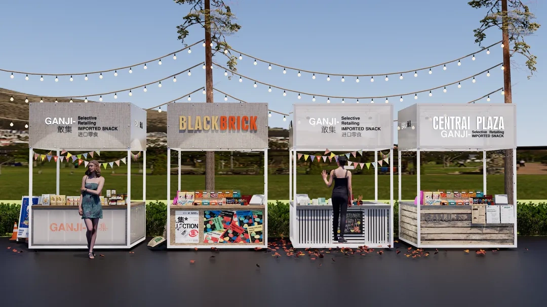 网红摊位场景SketchUp草图大师模型下载ID48118