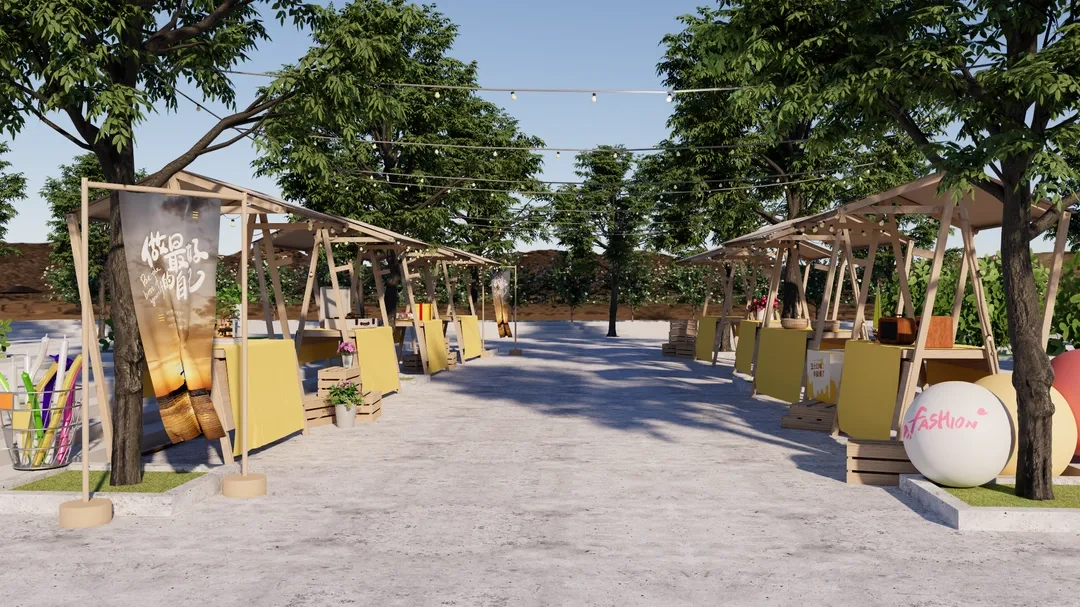 网红摊位场景SketchUp草图大师模型下载ID48159