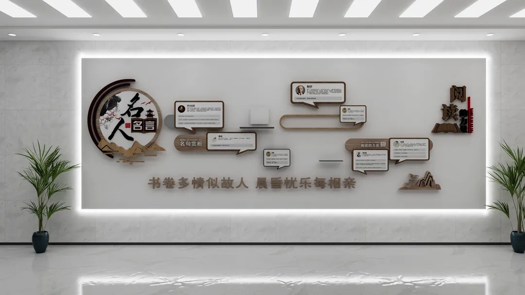 图书馆阅读室走廊文化墙场景SketchUp草图大师模型下载ID54920
