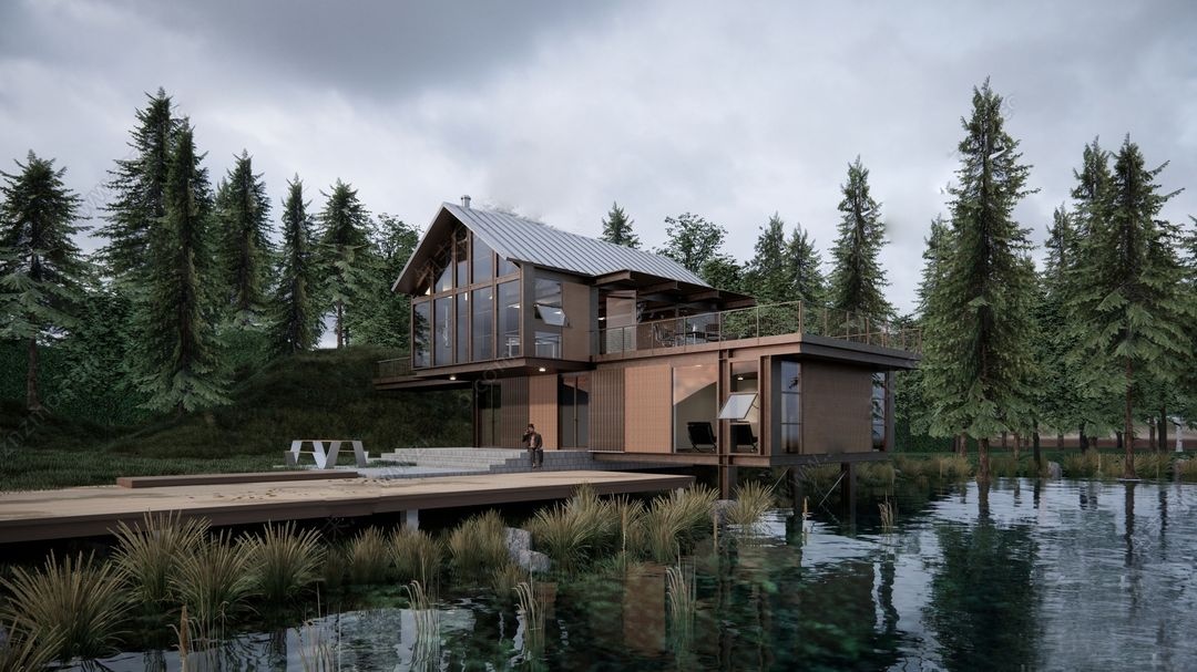 现代民宿建筑场景SketchUp草图大师模型下载ID93848