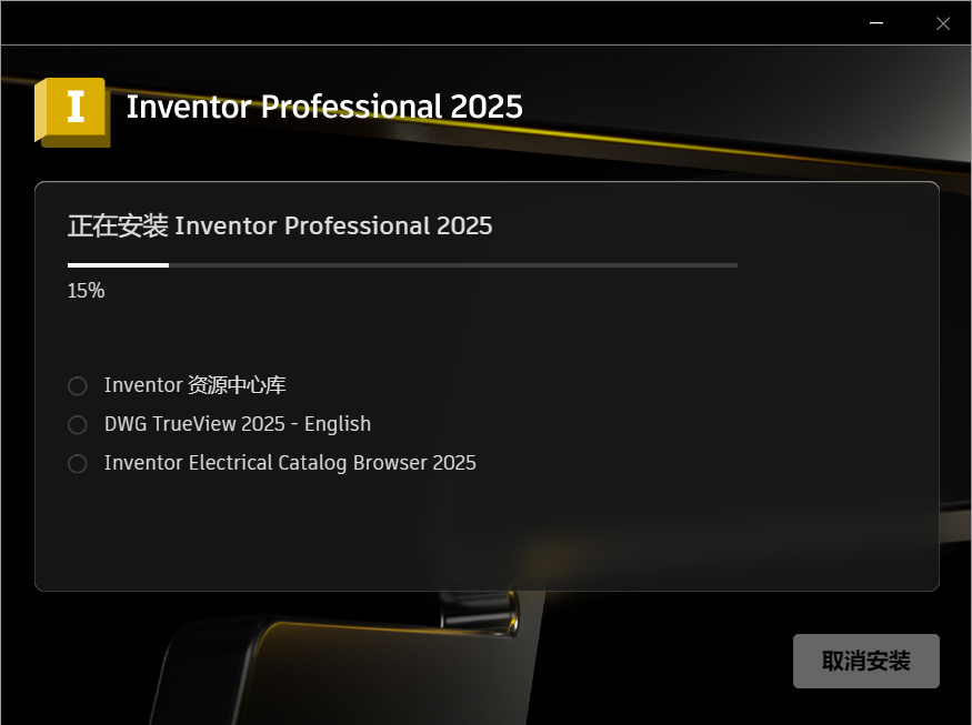 Inventor Professional 2025 安装完成,点击“X”关闭,不要开始