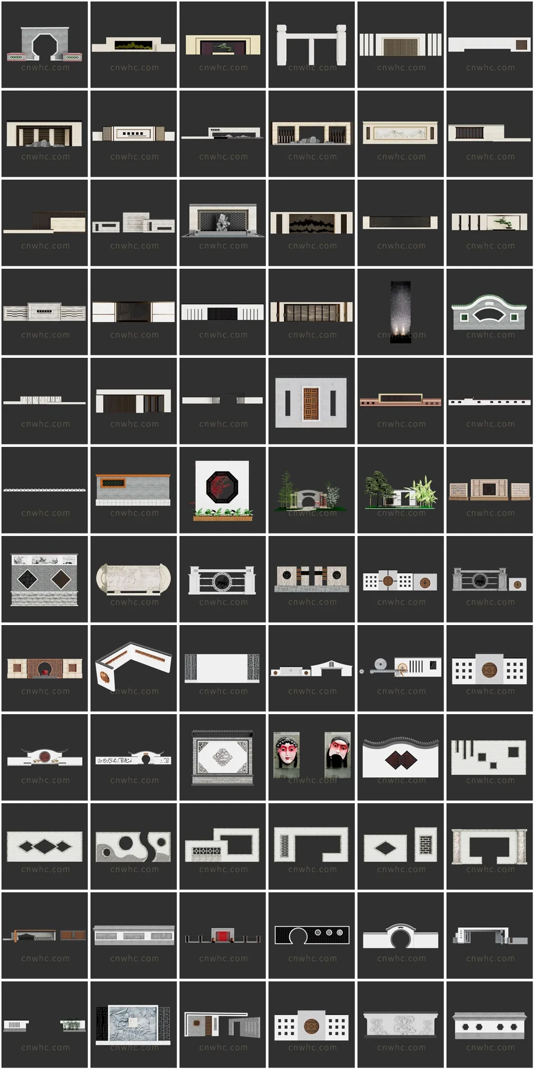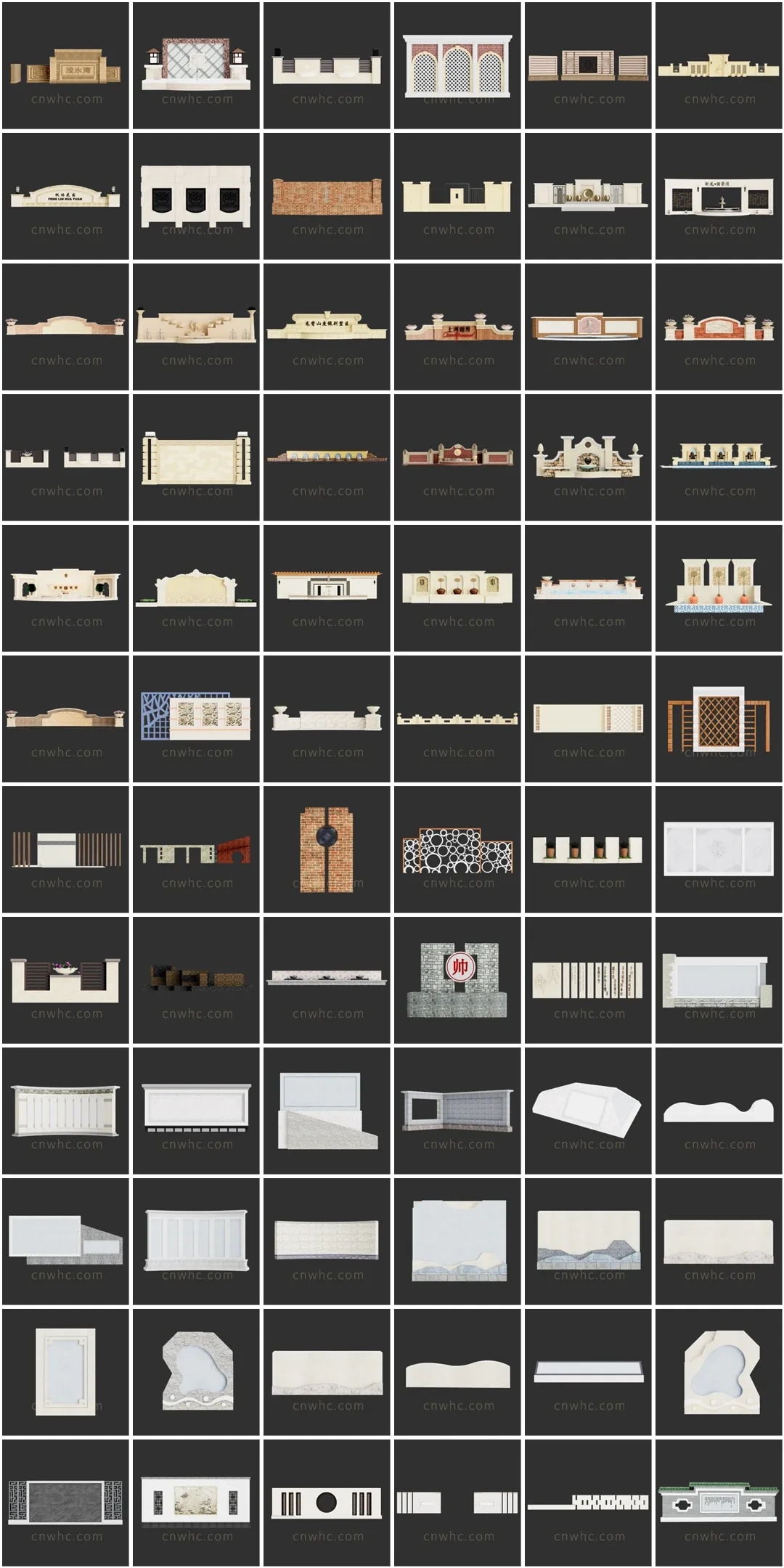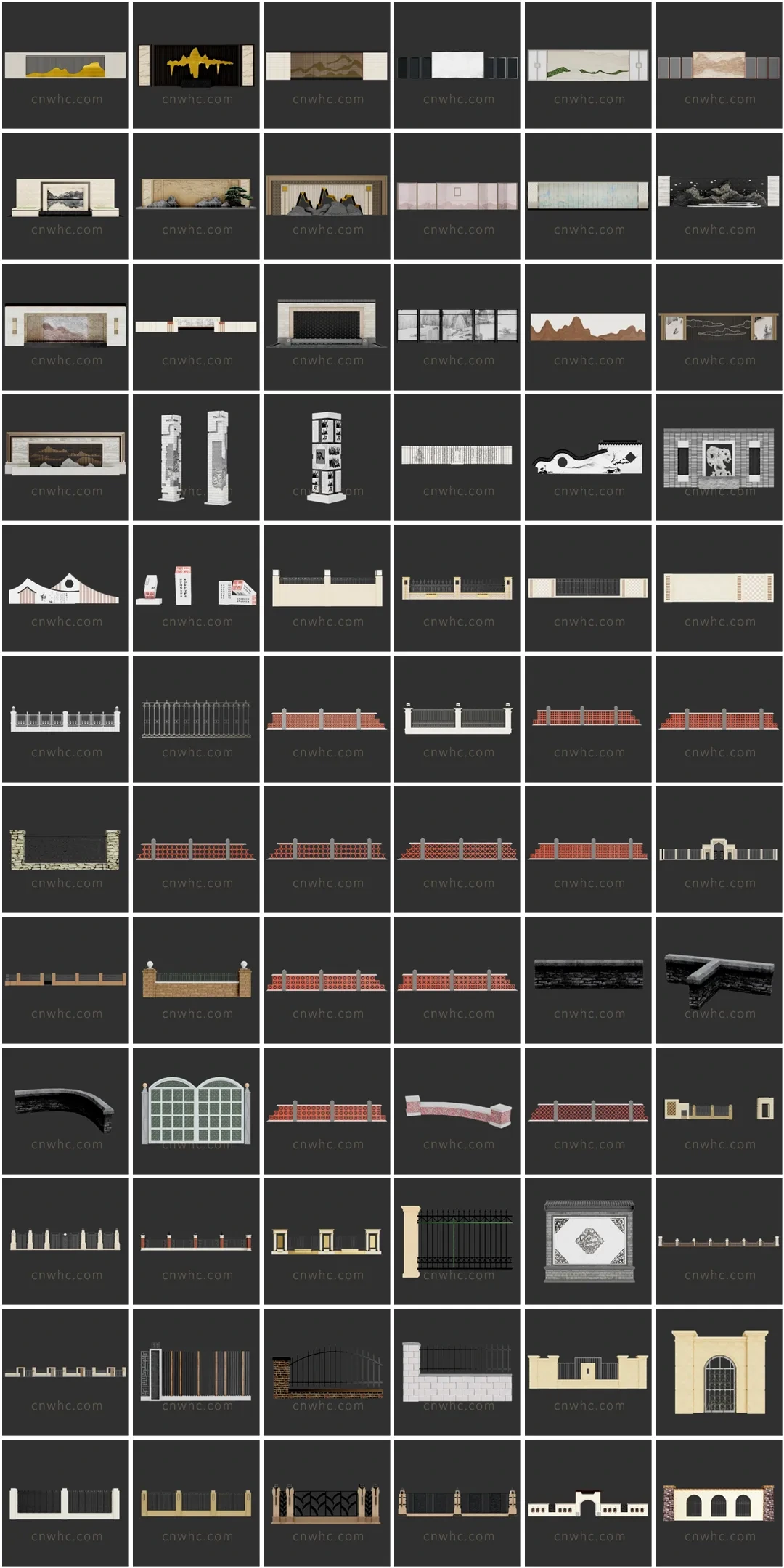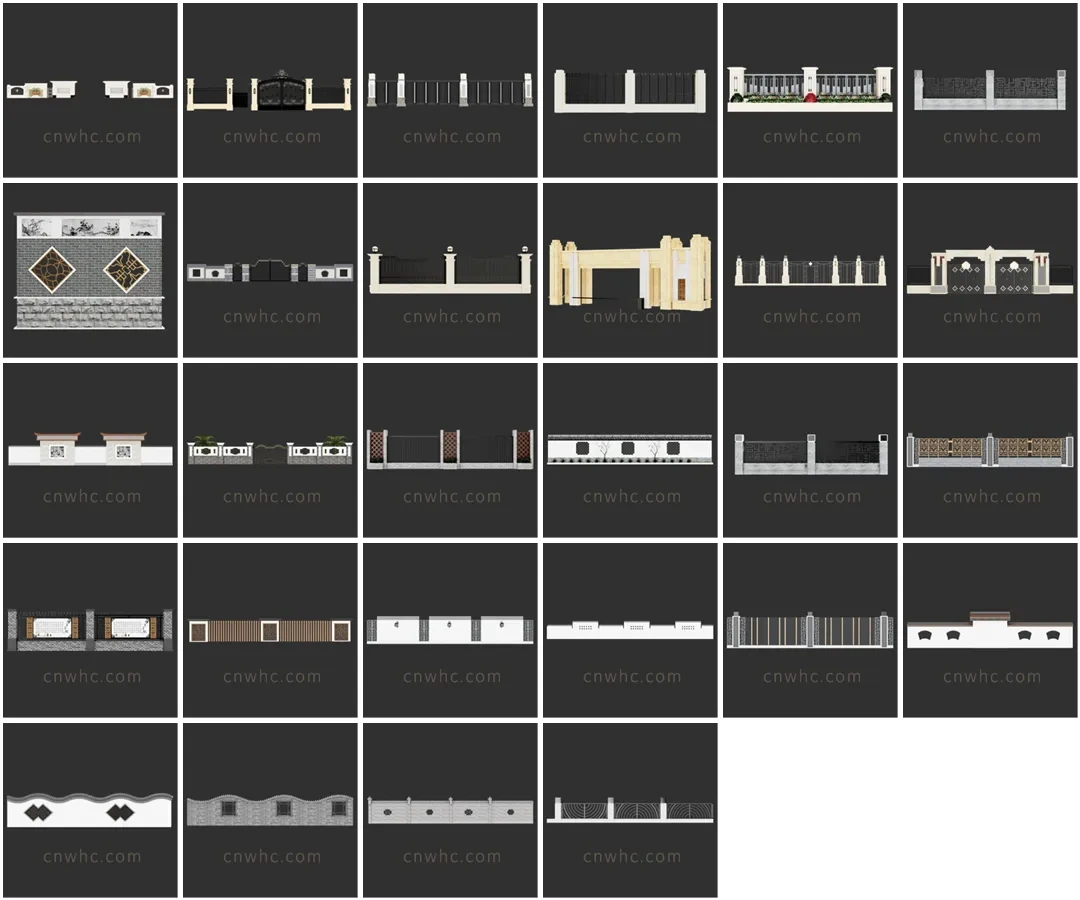 景墙围墙SU草图大师sketchup模型免费下载T092