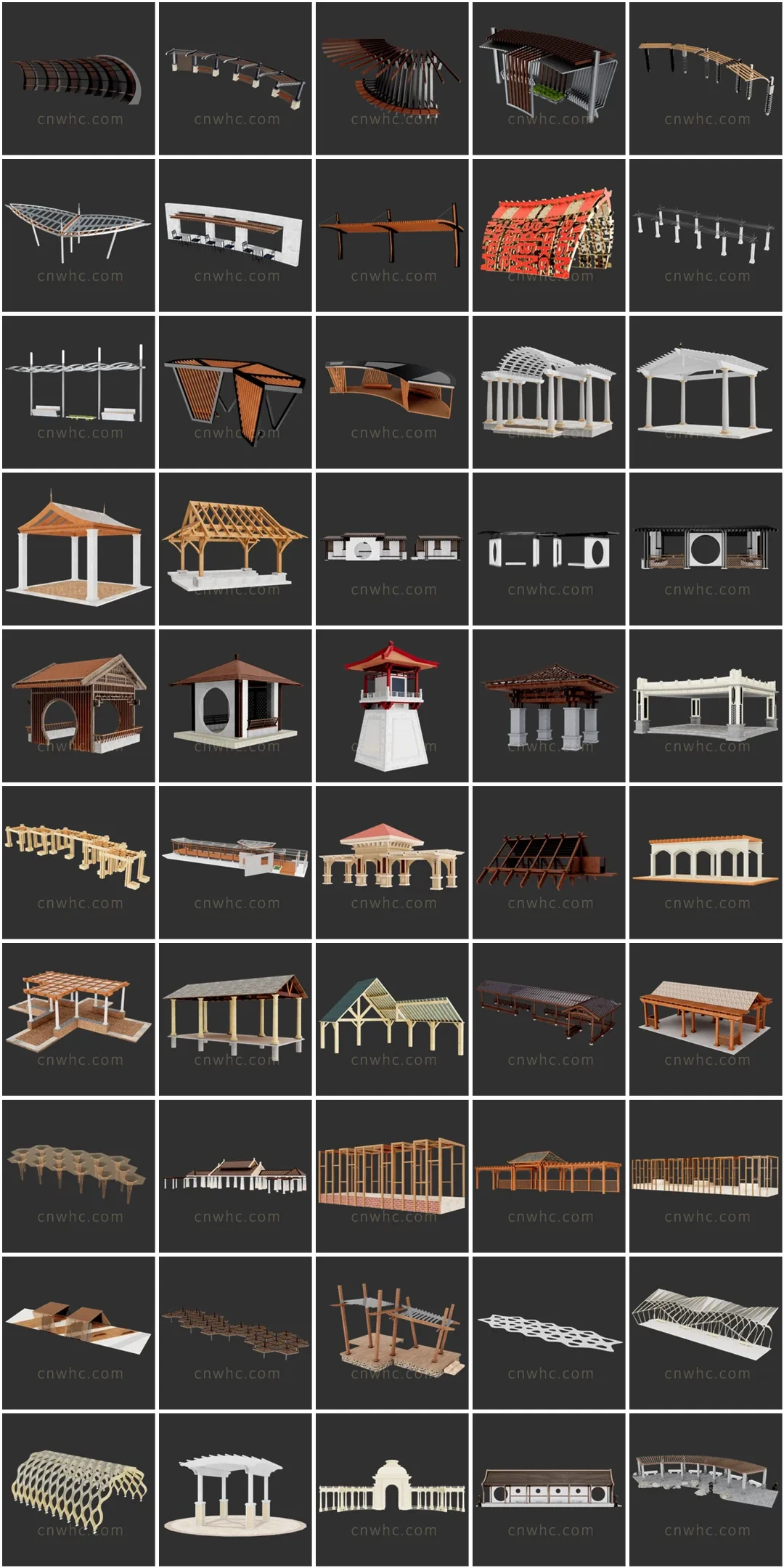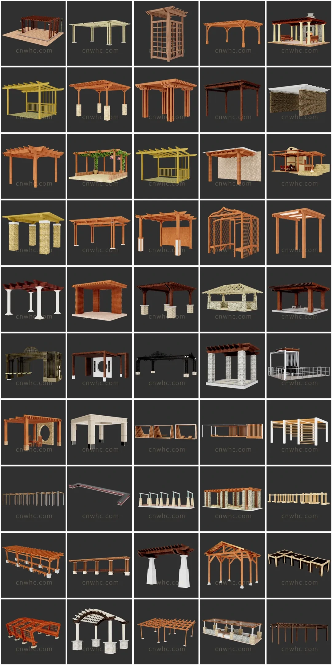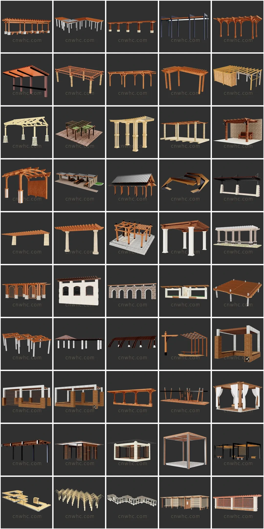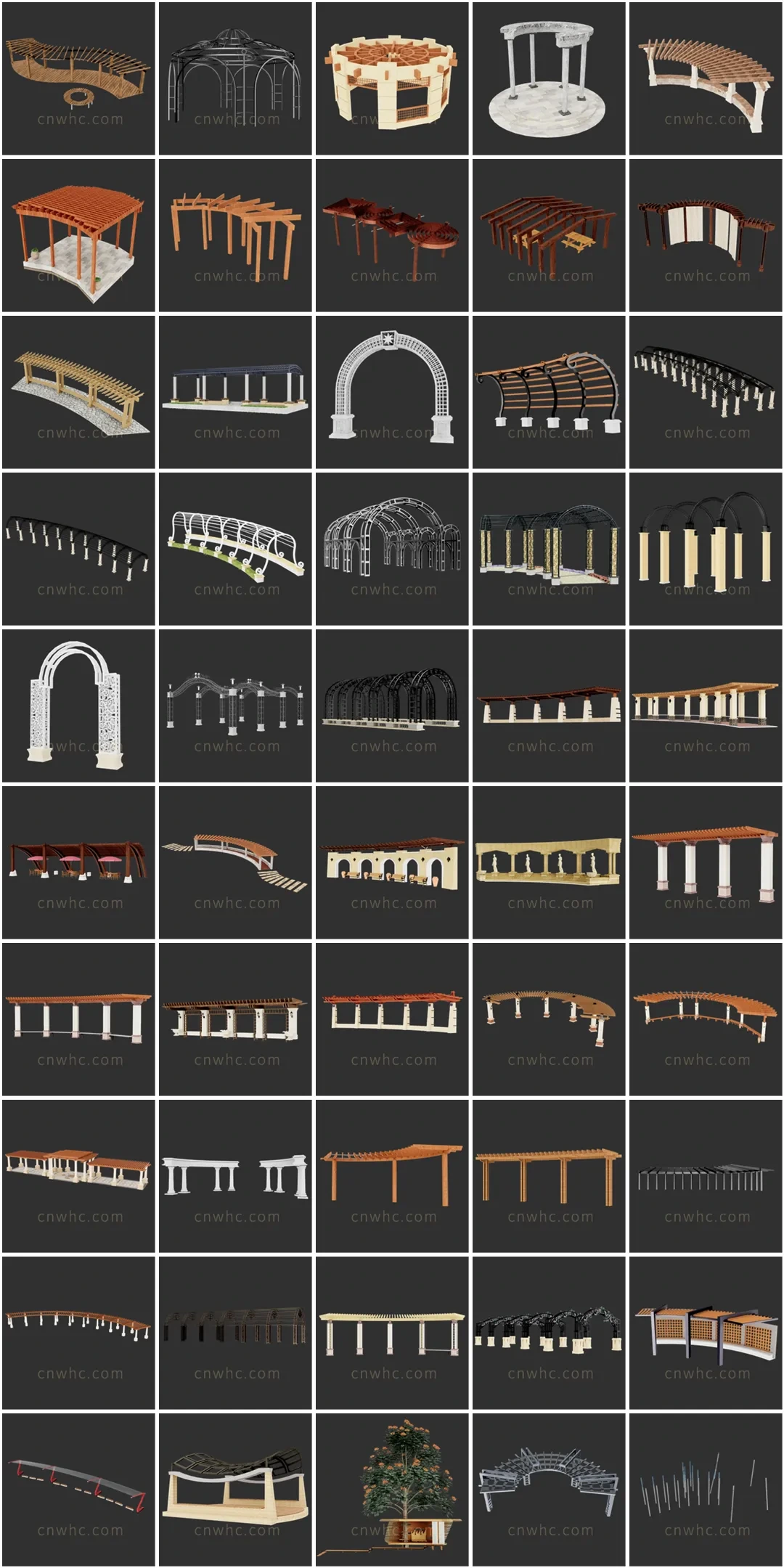 廊架亭廊SU草图大师sketchup模型免费下载T098