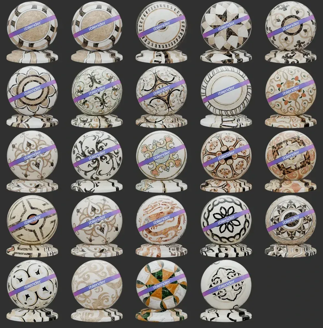 061水刀拼花大理石Blender材质资产库