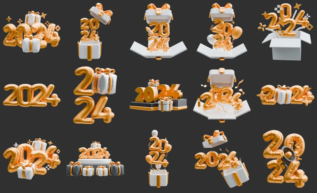 新年数字立体图标Blender资产库-饰品摆设3D模型
