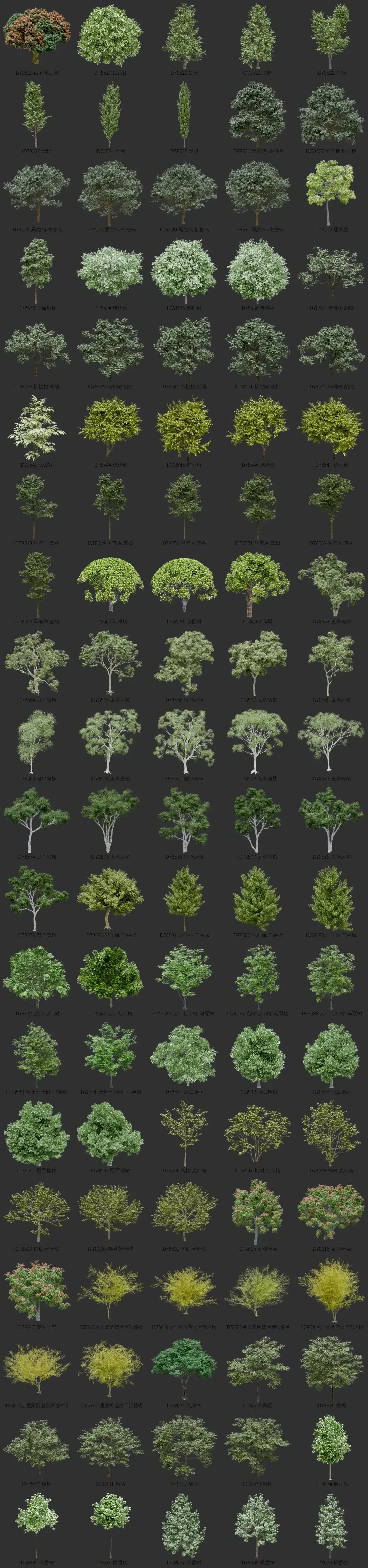 blender阔叶树资产库景观植物花卉3D模型052
