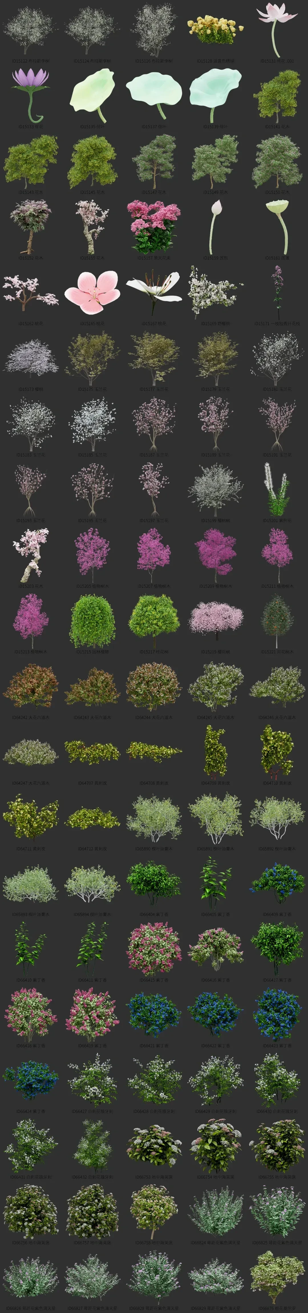 blender开花树木资产库景观植物花卉3D模型010