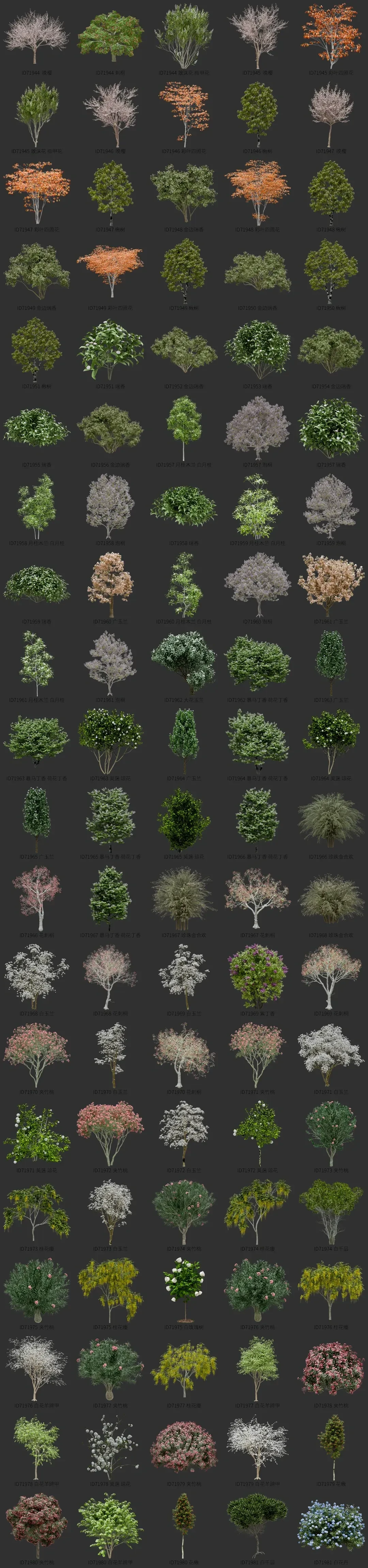 blender开花树木资产库景观植物花卉3D模型018