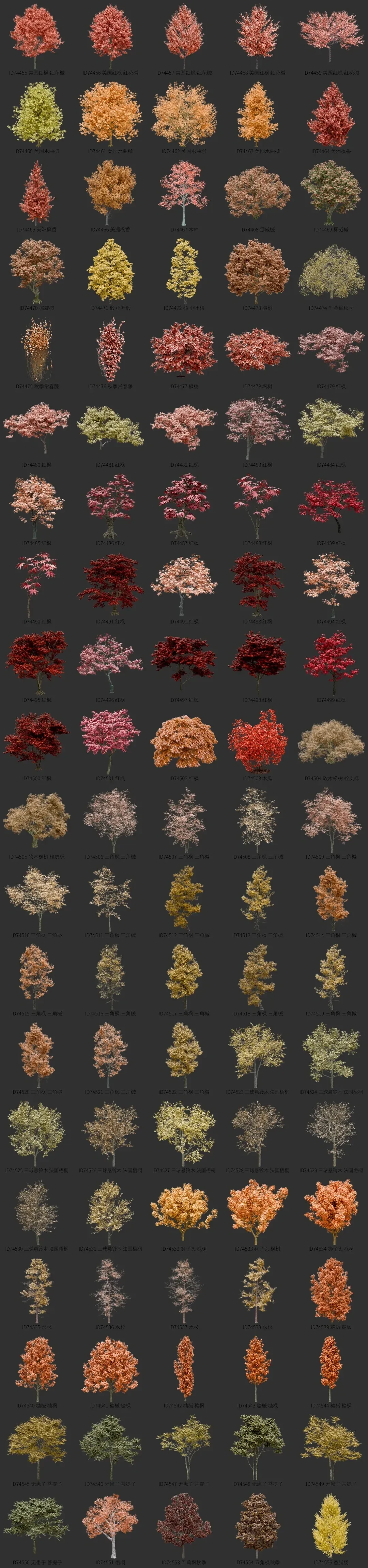 blender秋季树木资产库景观植物花卉3D模型003