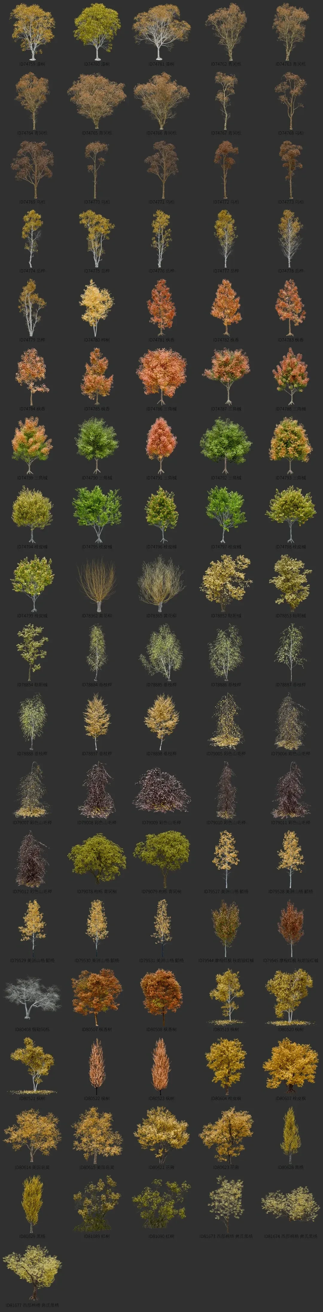 blender秋季树木资产库景观植物花卉3D模型006