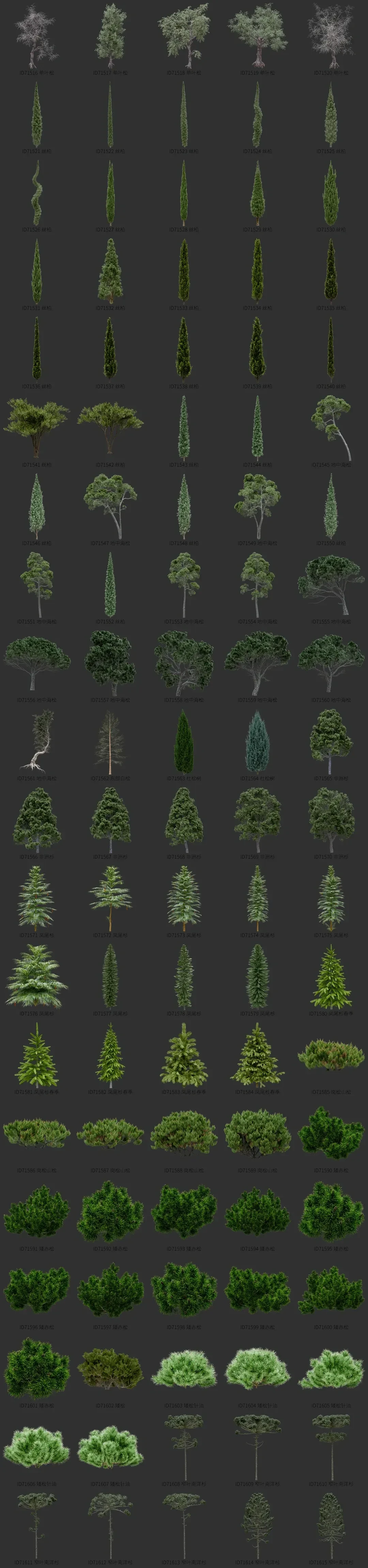 blender针叶植物资产库景观植物花卉3D模型011