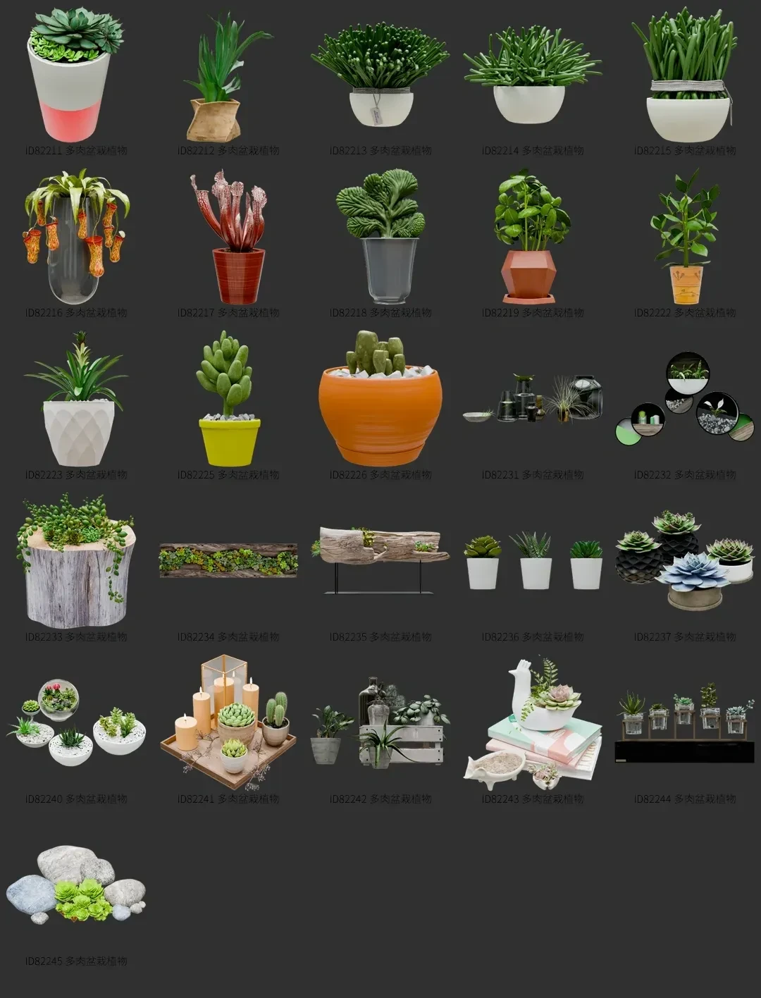 blender多肉植物资产库景观植物花卉3D模型003